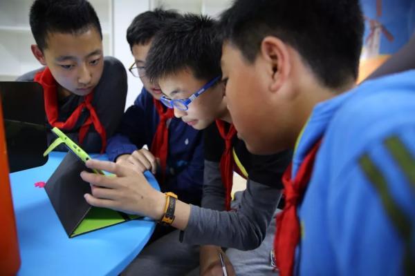 幾位小學(xué)生正在用平板電腦設(shè)計(jì)作品(圖片來(lái)源:半月談)