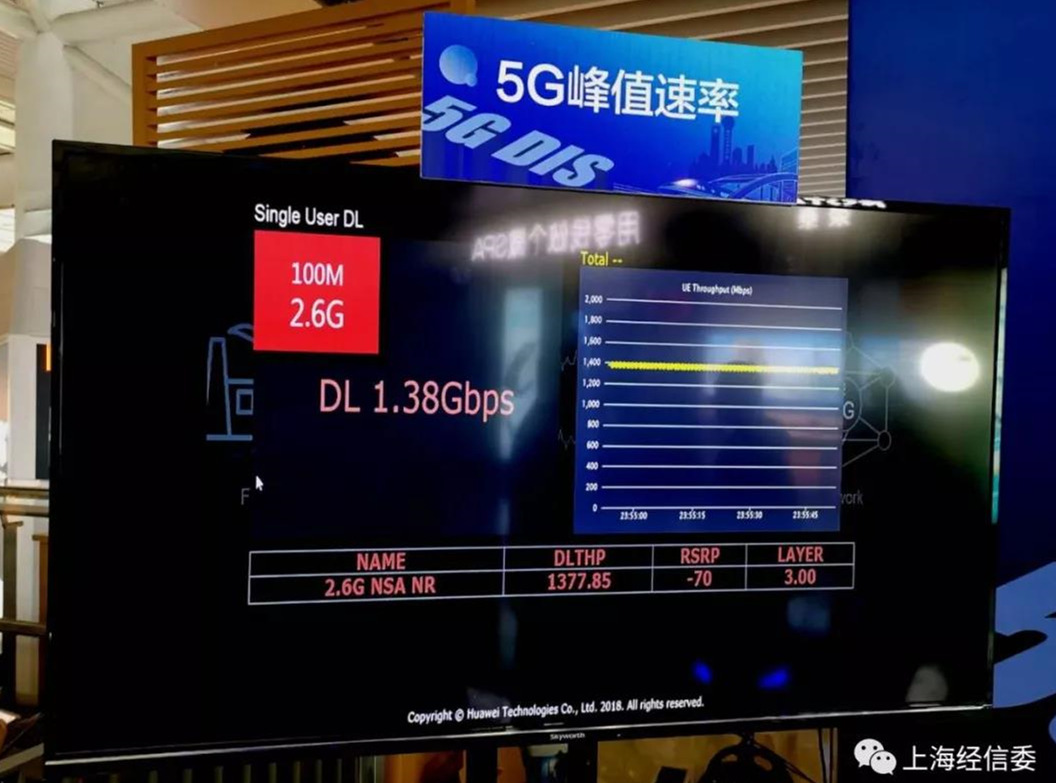 2月18日,上海虹橋火車站啟動(dòng)5G網(wǎng)絡(luò)建設(shè),計(jì)劃2019年年內(nèi)完成5G網(wǎng)絡(luò)深度覆蓋,將成為首個(gè)采用5G室內(nèi)數(shù)字系統(tǒng)建設(shè)的火車站。圖為5G峰值速率展示。(上海經(jīng)信委)