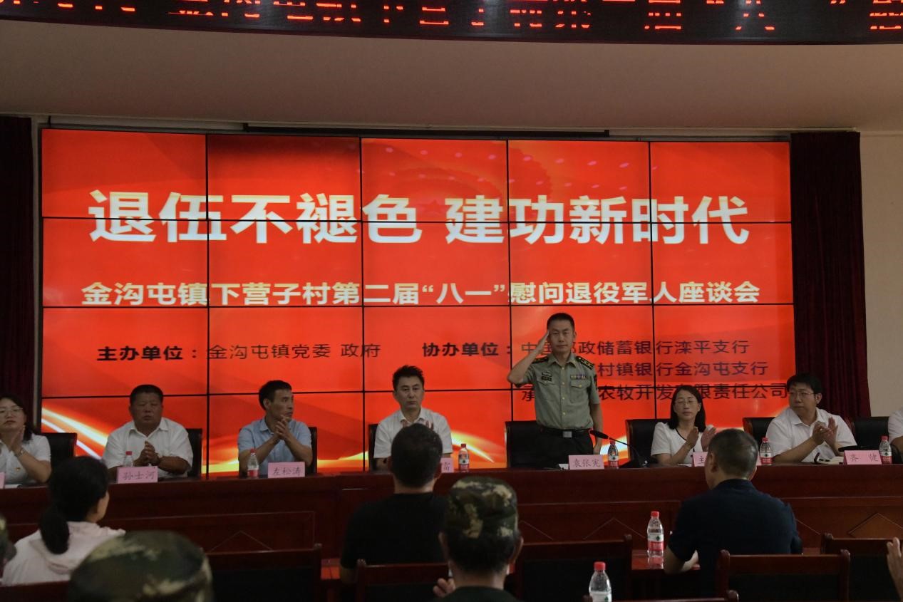 8月1日下午,灤平縣金溝屯鎮(zhèn)下?tīng)I(yíng)子村聯(lián)合愛(ài)心企業(yè)中國(guó)郵政儲(chǔ)蓄銀行灤平支行、灤平盛陽(yáng)村鎮(zhèn)銀行金溝屯支行和承德久財(cái)農(nóng)牧開(kāi)發(fā)有限責(zé)任公司共同舉辦了“退伍不褪色 建功新時(shí)代”第二屆“八一”慰問(wèn)退役軍人座談會(huì);顒(dòng)現(xiàn)場(chǎng),大家歡聚一堂,共同慶祝中國(guó)人民解放軍建軍95周年,共敘魚水深情,并為優(yōu)秀退役軍人頒發(fā)榮譽(yù)證書。 王海琦 郎朗 攝