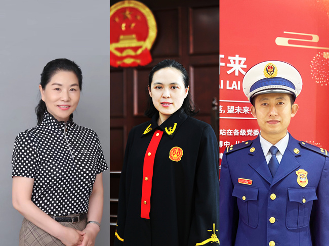 從左到右依次為全國(guó)最美信訪干部、北京市豐臺(tái)區(qū)信訪辦公室二級(jí)巡視員王凱,北京市朝陽(yáng)區(qū)人民法院南磨房人民法庭副庭長(zhǎng)、四級(jí)高級(jí)法官付艷,北京市朝陽(yáng)區(qū)消防救援支隊(duì)奧林匹克公園特勤站副指導(dǎo)員、三級(jí)指揮員仇志宏