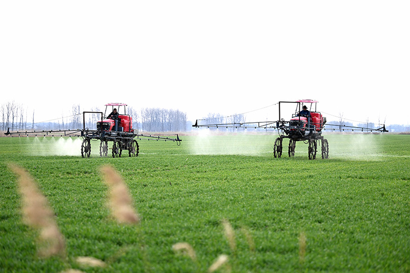 2月14日,安徽蚌埠五河縣農(nóng)民駕駛農(nóng)機給小麥噴灑農(nóng)藥。新華社記者 黃博涵攝